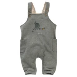 People Wear Organic Baby SSweat-Latzhose khaki mélange mit Motivdruck „Best Friends“ aus Bio-Baumwolle