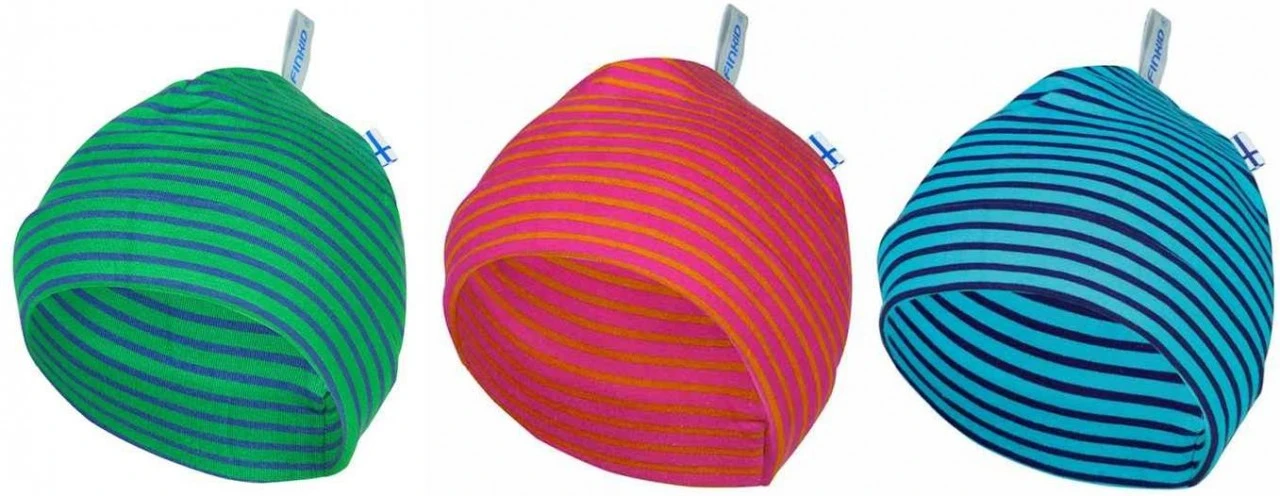 Wärmende Finkid Baby Ringelmütze aus Sweati-Stoff. Die süße Babymütze sitzt gut am Kopf und rutscht nicht über die Augen. Dank dem verwendeten dicken doppellagigen Baumwollstoff frieren Kinder nicht so schnell am Kopf, auch wenn es draußen etwas kühler ist. Die Ohren sind auch gut vor Wind geschützt.