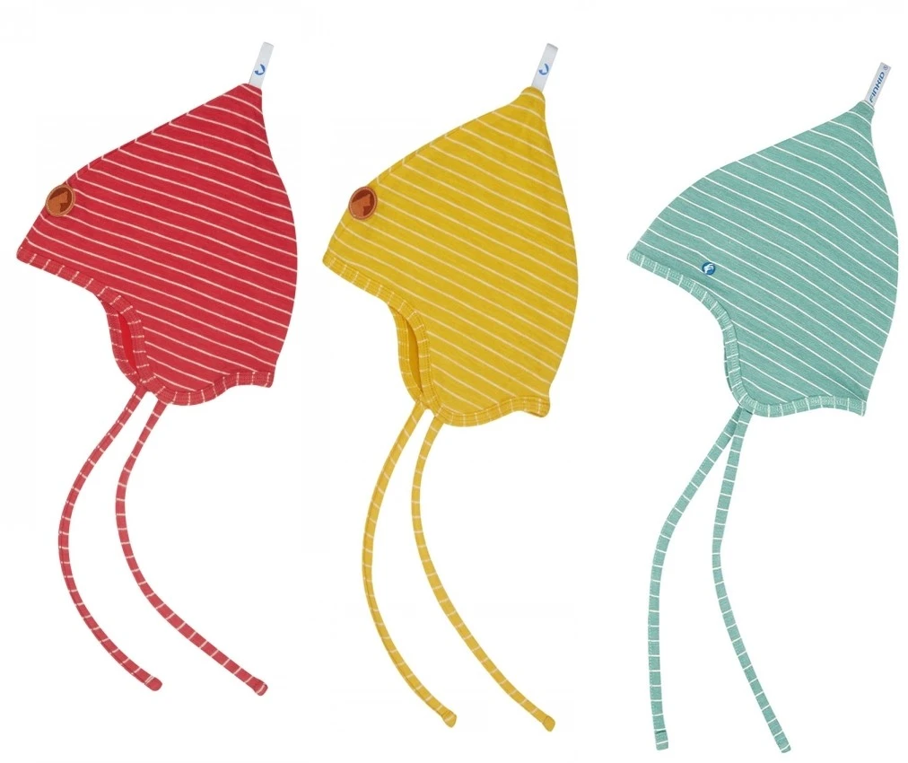 Leichte Finkid Ringelmütze zum Binden.Die süße Jersey Zipfelmütze sitzt gut am Kopf und rutscht nicht über die Augen. Die angeschnittene Form schützt die Ohren vor Zugluft. Dank dem verwendeten weichen doppellagigen Baumwollstoff schwitzen Kinder nicht so schnell am Kopf, auch wenn es mal etwas wärmer wird im Lauf des Tages.