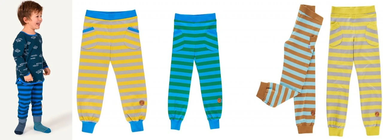 Fröhlich bunt geringelte Finkid Baumwoll Leggins für Mädchen und Jungen. Die bequeme Paßform der hübschen Jerseyhosen sorgt für ein optimales Tragegefühl. Der weiche Ringeljerseystoff ist weich und dehnbar. Prima auch als Baby Spielhose, Schlafhose, Turnhose oder als lange Unterhose zum Drunterziehen für den Zwiebellook im Winter geeignet. Durch die breiten Bündchen in der Taille und an den Beinenden sitzt die Legins prima, ohne einzuengen.