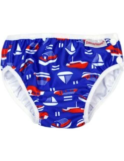 Wiederverwendbare Schwimmwindel von ImseVimse mit Segelboot in blau / rot