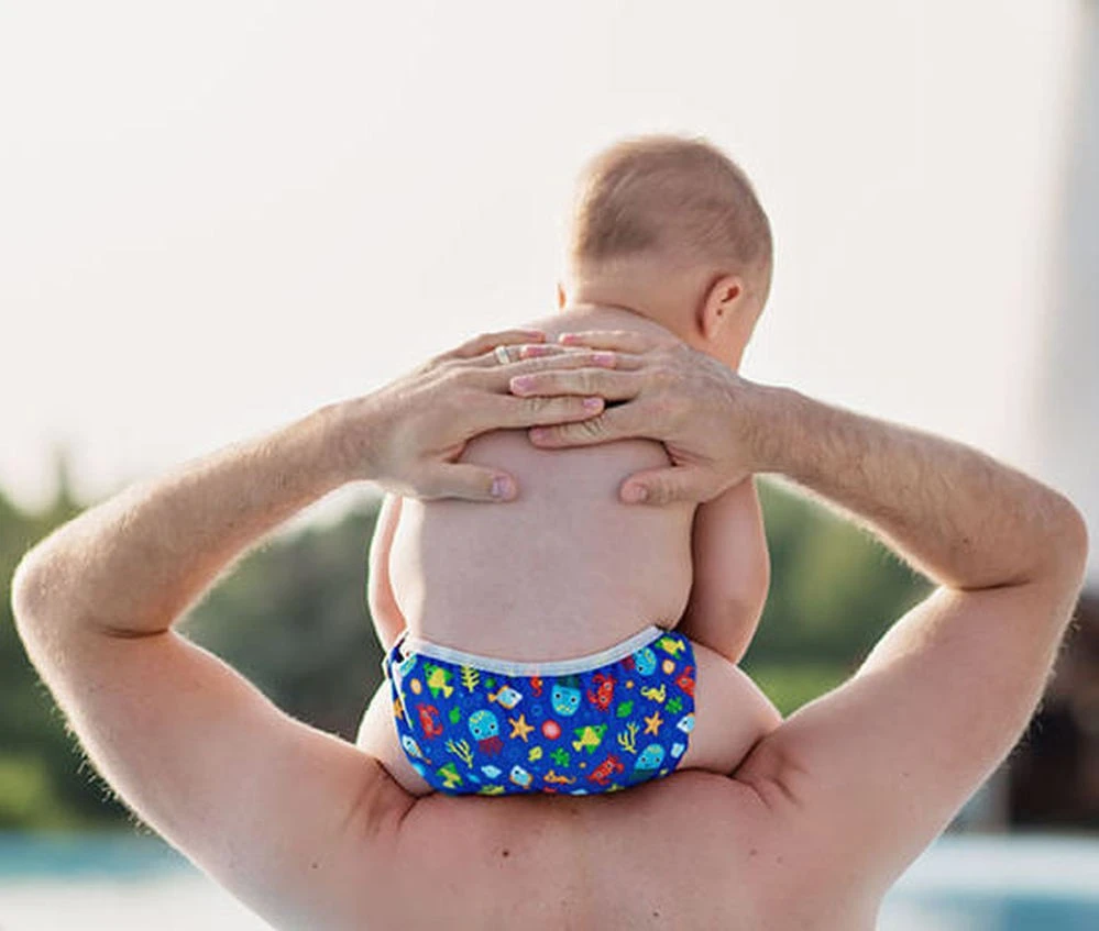 Durch die seitlich angebrachten Druckknöpfe lässt sich die Schwimmwindeln kinderleicht an- und ausziehen.