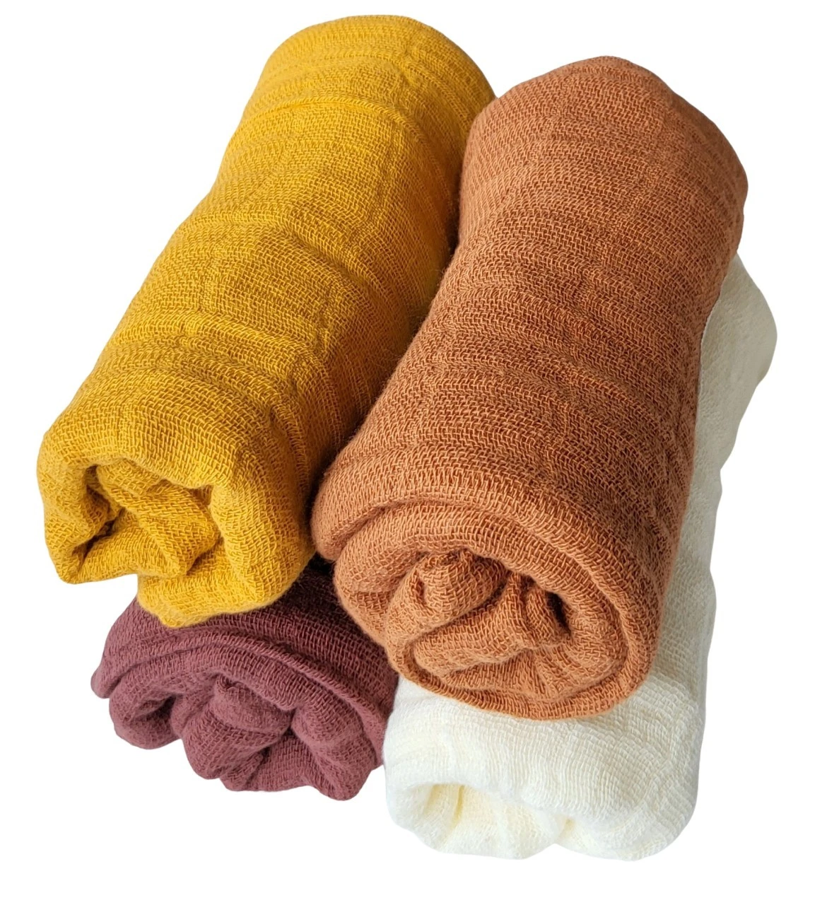 Ideal für jeden Babyhaushalt, auch prima als Geschenk zur Geburt geeignet. Die schönen einfarbigen Mullwindeln aus Bio-Baumwolle kommen im 4er Pack.