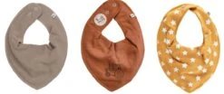 Saugfähige Halstücher für kleine Sabberschuten. Die praktischen Pippi Baumwoll-Lätzchen kommen im 3er Pack. Drei verschiedene Farben, alle sind in unterschiedlichen Designs . Ein wunderbares Accessoire, das Wäsche sparen hilft, und gleichzeitig noch gut aussieht. Die Halstücher haben zwei kleine Druckknöpfe, damit sie schnell an- und ausgezogen werden können