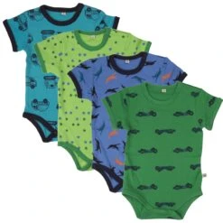Pippi Baby Kurzarm Body blau/grün 4er Pack mit modischem Druck