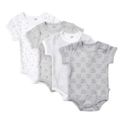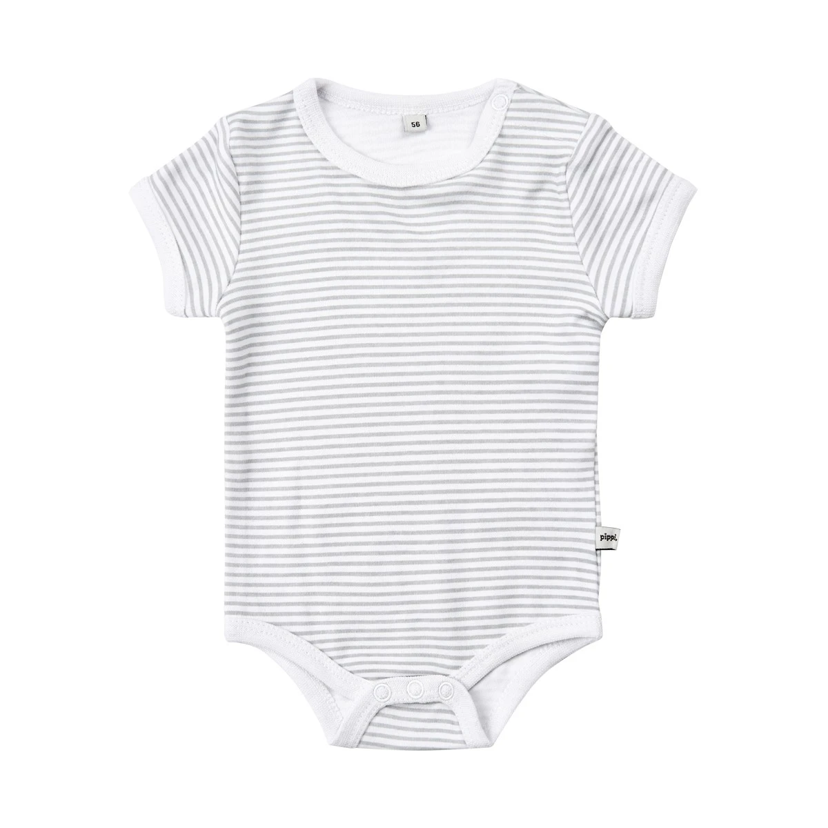 Pippi Baby Kurzarm Body grau/weiß 4er Pack mit modischem Druck