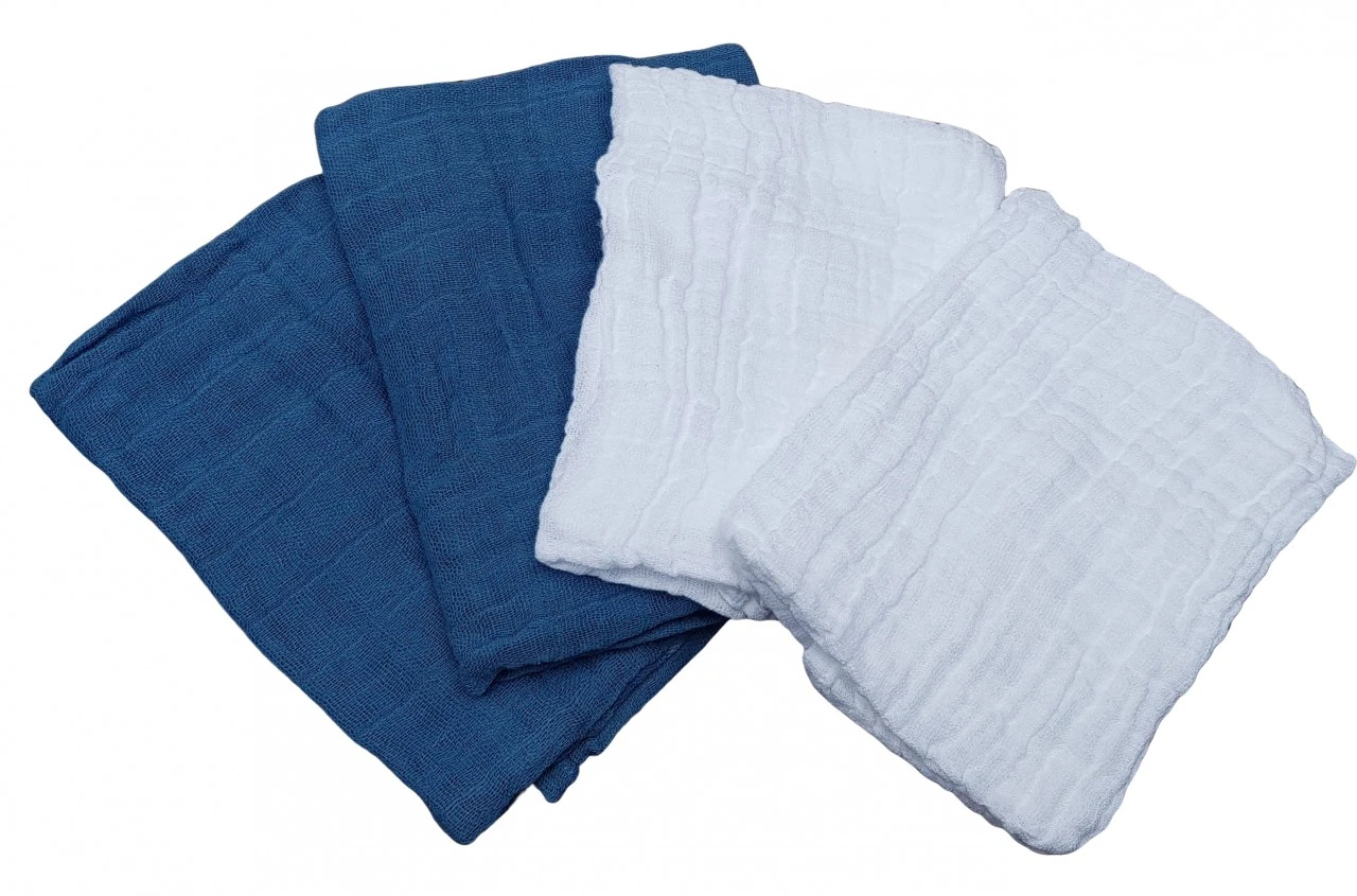 pippi® Organic Stoffwindeln mittelblau/weiß Spucktücher Mullwindeln 4er Pack